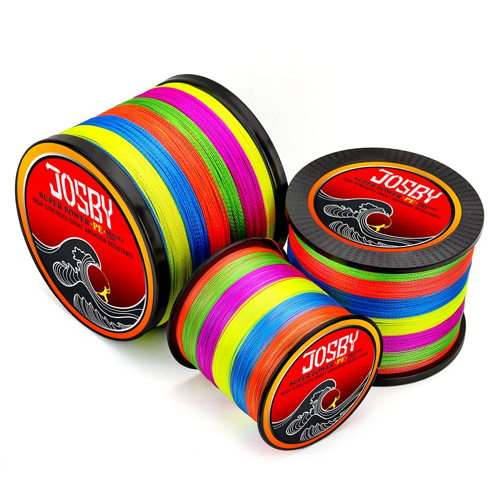 JOSBY Fishing Line 100m 300m 500m 9 Strands 8 Strands 4 Strands Multicolour PE Braided Wire Multifilament 4 Color 22LBS-100LBS