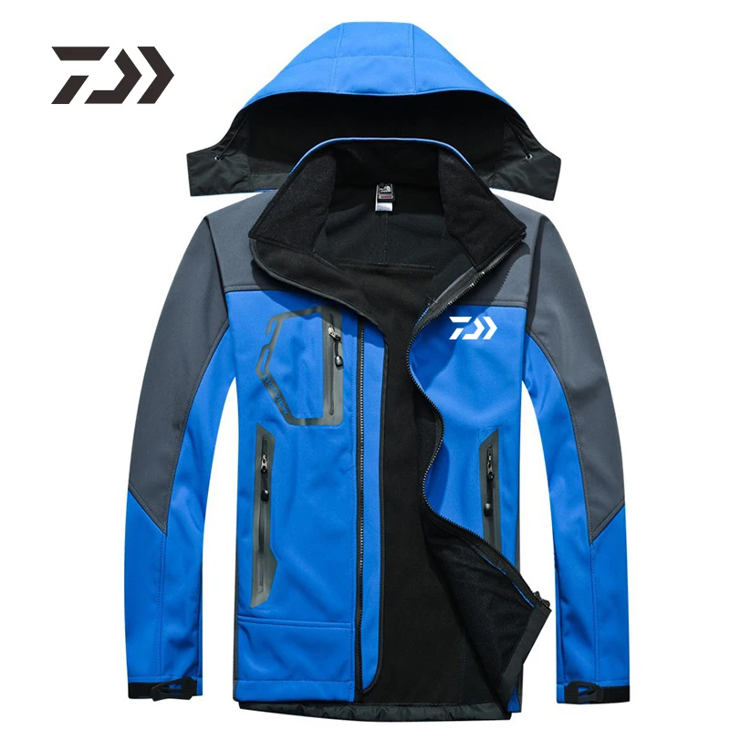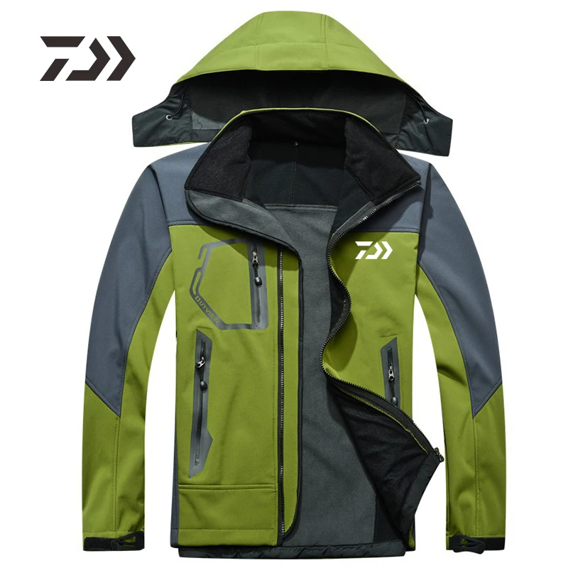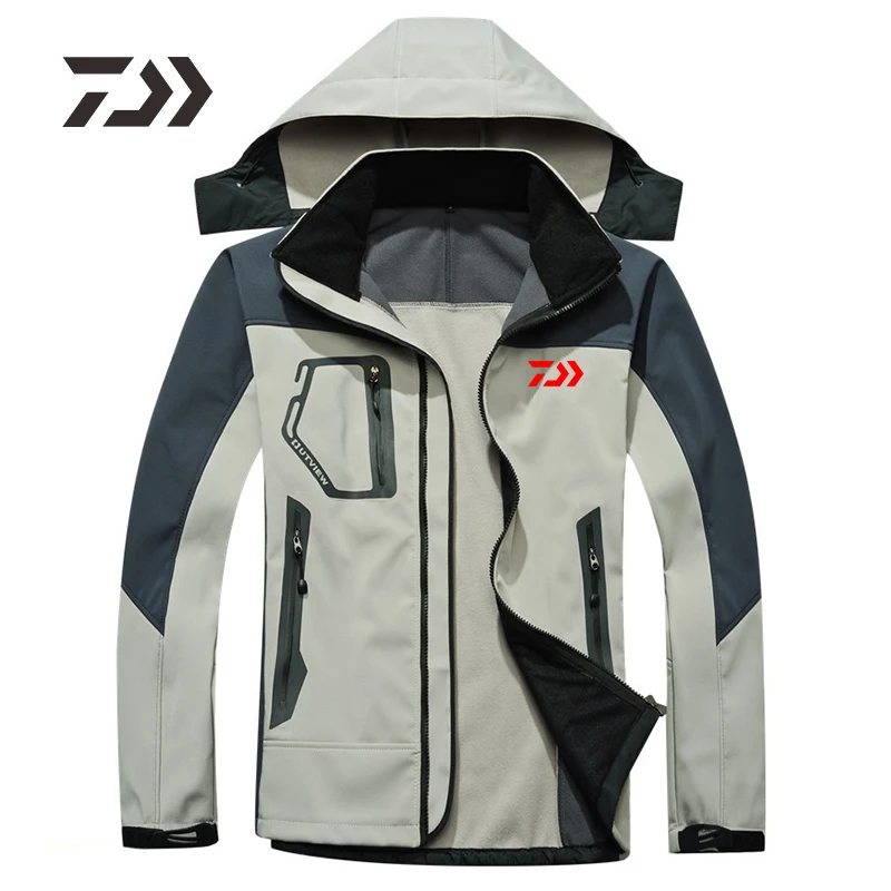 2019 New Daiwa Fishing Jackets Men Outdoor Waterproof Fleece Warm Climbing Fishing Clothing Hooded Soft Shell Fishing Clothes